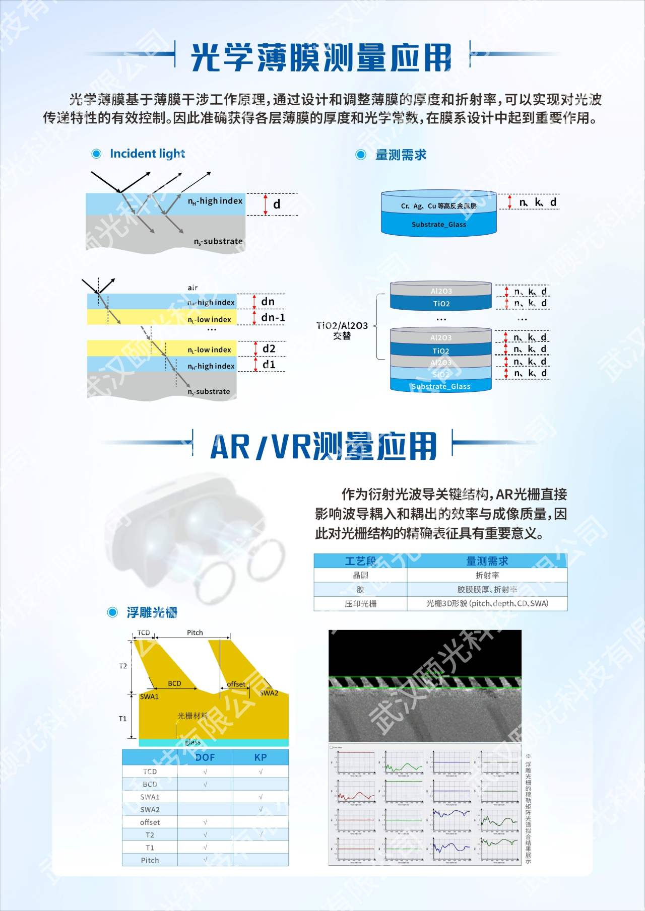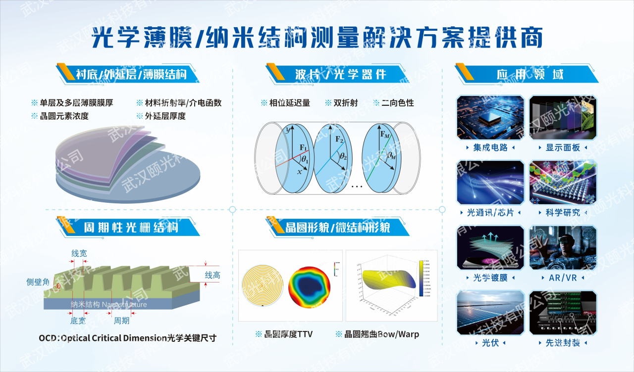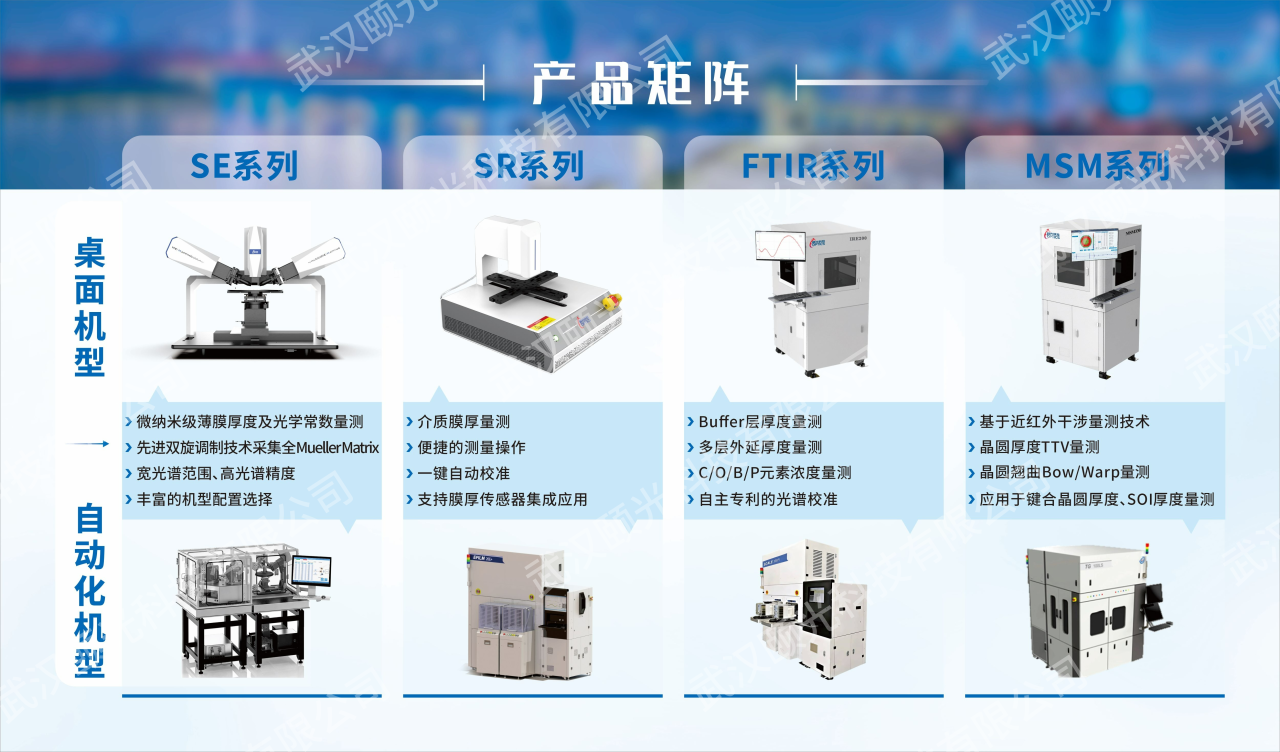 核心产品包括系列化光谱椭偏仪(SE)、反射膜厚仪(SR)、傅里叶变换红外光谱仪(FTIR)及晶圆形貌量测设备等,广泛应用于半导体、显示面板、光通信、新能源、光学镀膜、应用材料及科学研究等领域,为客户的研发创新与质量管控提供精准、高效的光学量测解决方案。