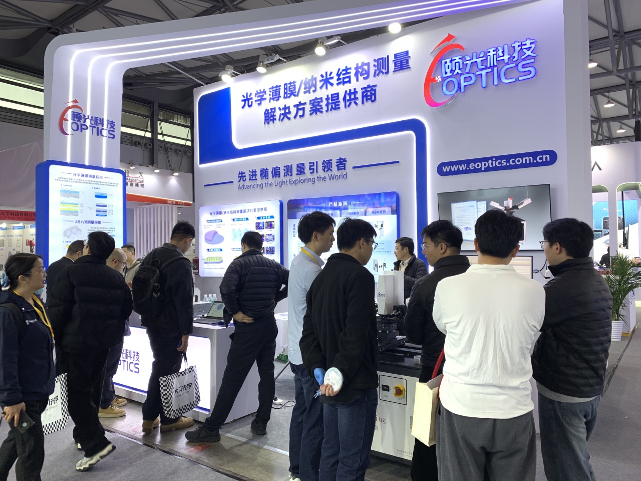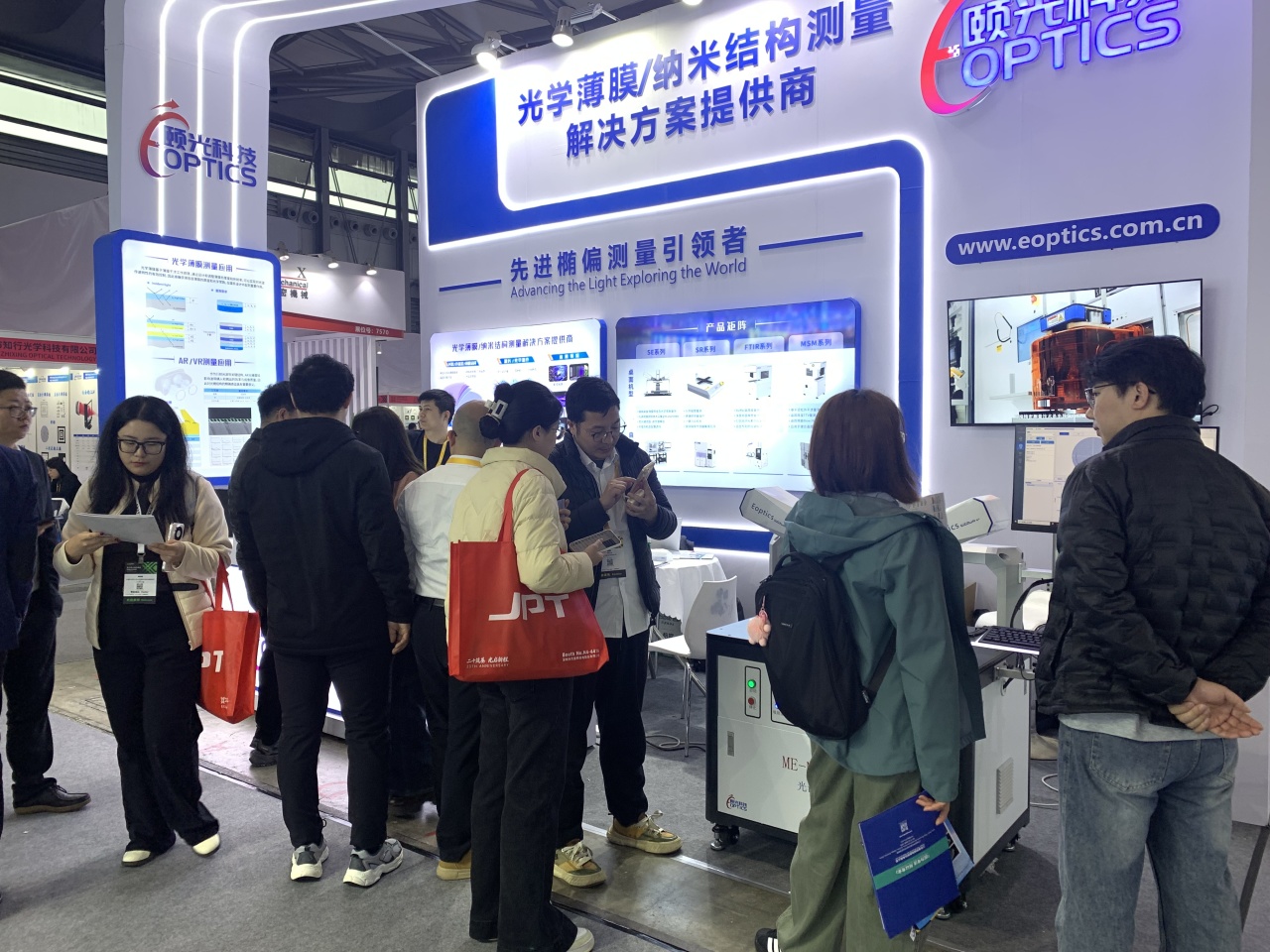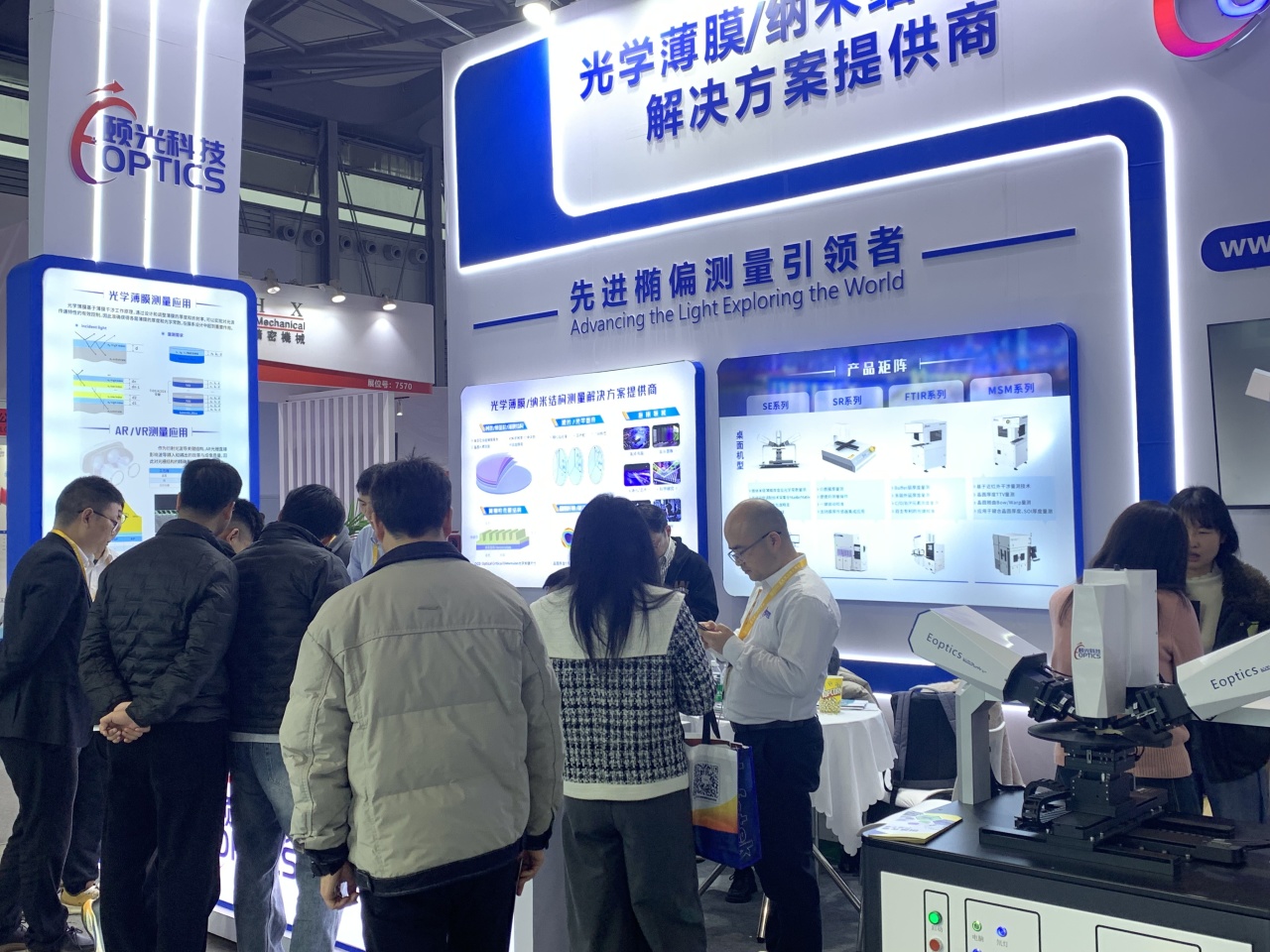 颐光科技携光谱椭偏仪、反射膜厚仪等核心产品亮相,集中展示在光学精密测量领域的技术积累与成熟解决方案,现场吸引众多国内外厂商、科研院所专家与专业观众驻足洽谈。